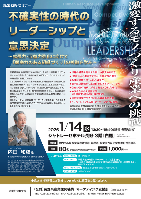 長野県産業振興機構より「経営戦略セミナー」参加者募集のご案内