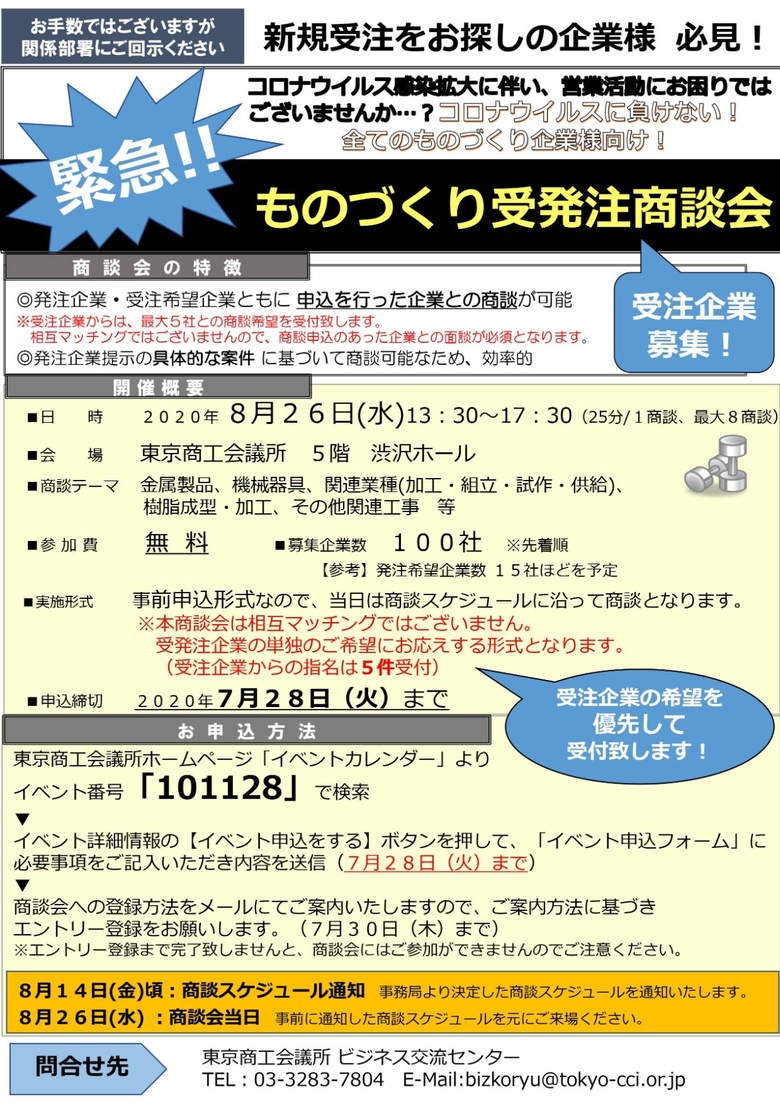 下諏訪商工会議所より、ものづくり企業様向け受発注商談会のご案内です。