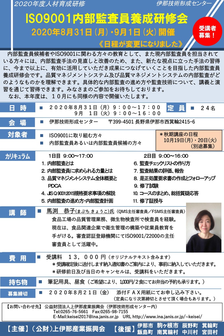 上伊那産業振興会より、ISO9001内部監査員研修会のご案内です。