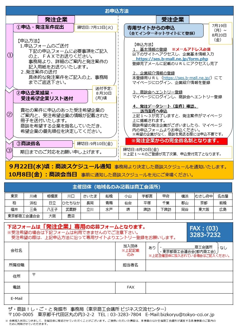 下諏訪商工会議所より、東京会議所主催「ザ・商談!し・ご・と発掘市」参加募集のご案内です。