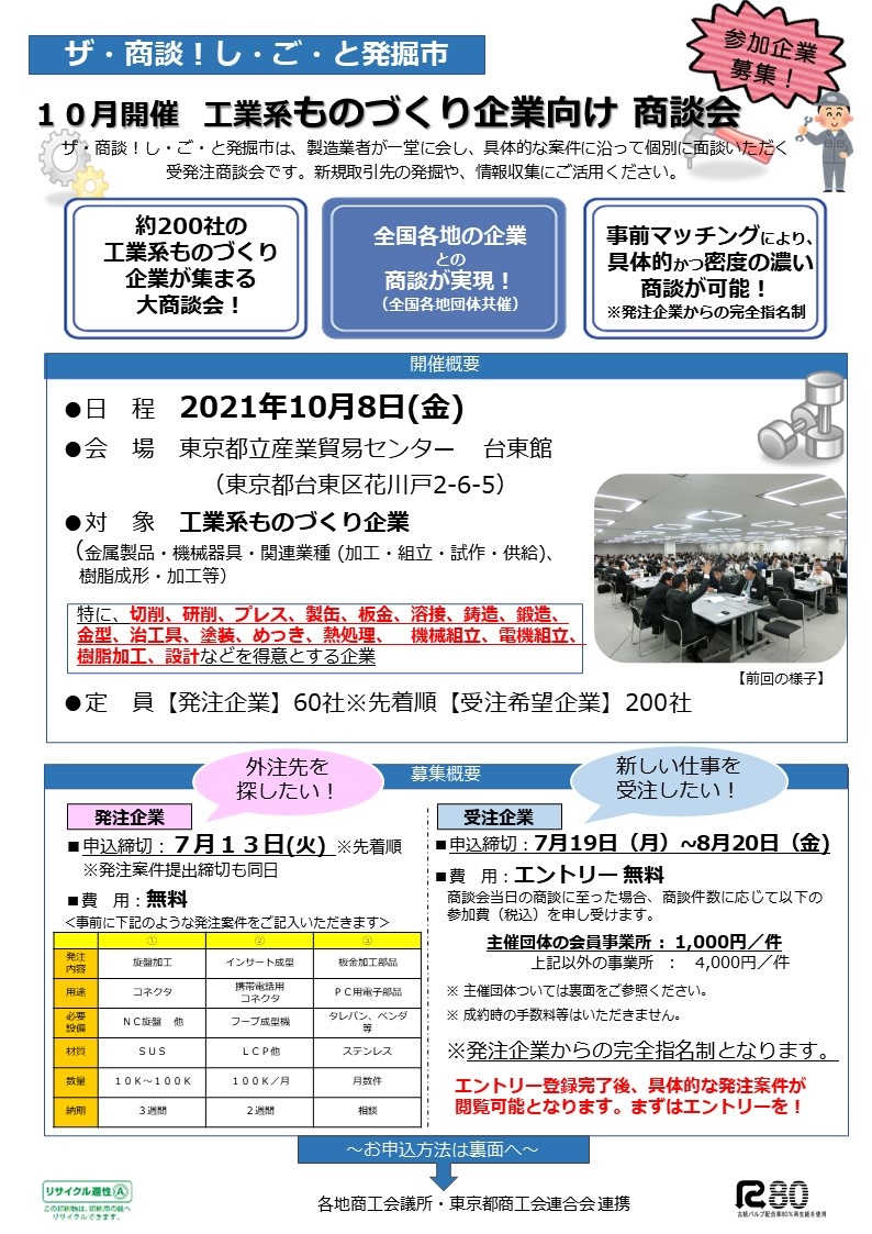 ザ・商談!し・ご・と発掘市参加企業募集のご案内