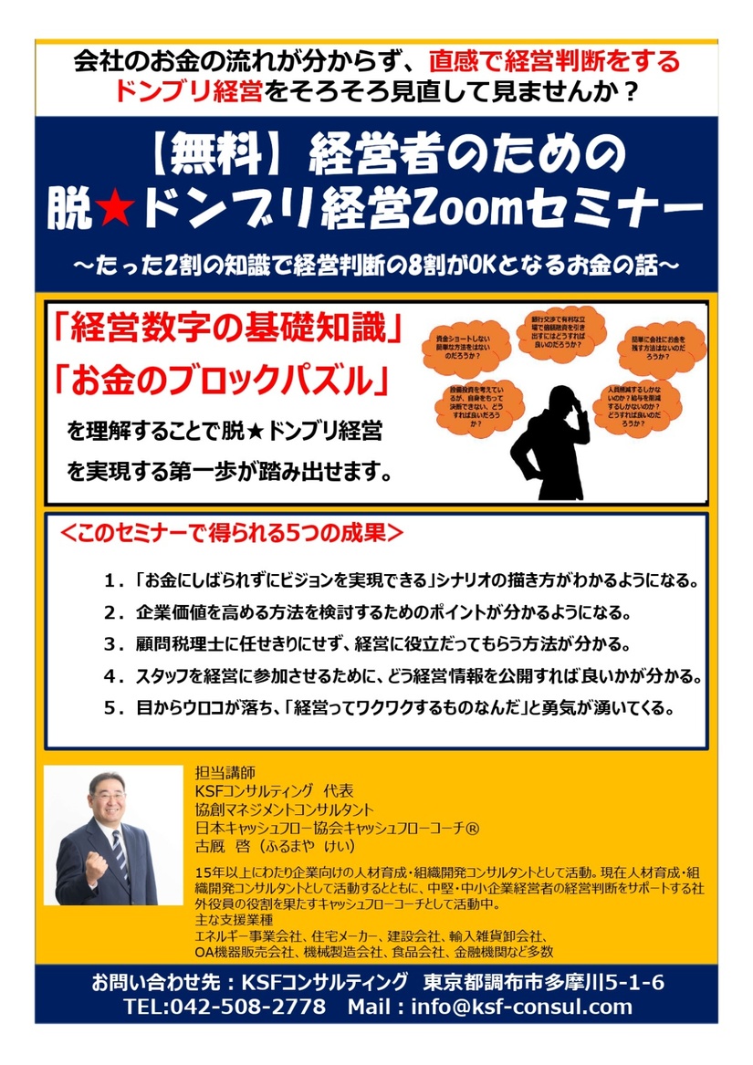 KSFコンサルティングより、経営者のための脱ドンブリ経営Zoomセミナー参加者募集のご案内です。
