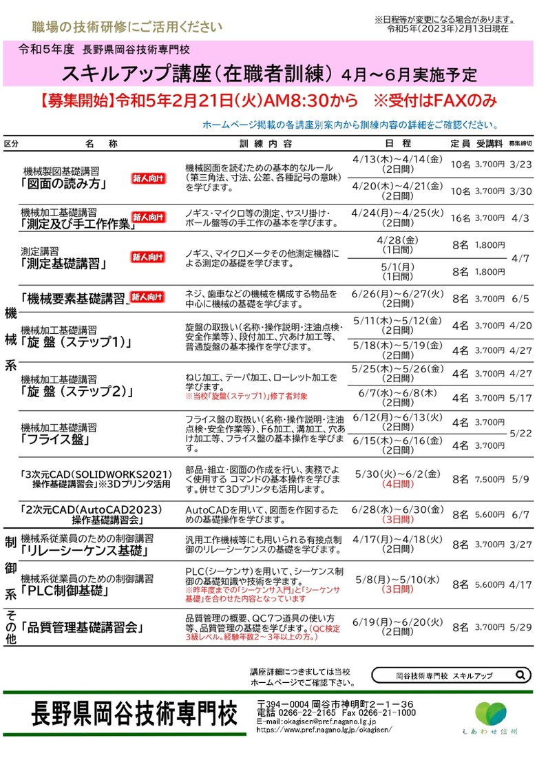 令和5年度スキルアップ講座(在職者訓練) 受講者募集のご案内