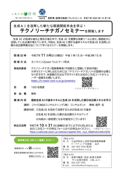 「生成AIを活用した新たな販路開拓の手法を学ぶ!テクノリーチナガノセミナー」のご案内
