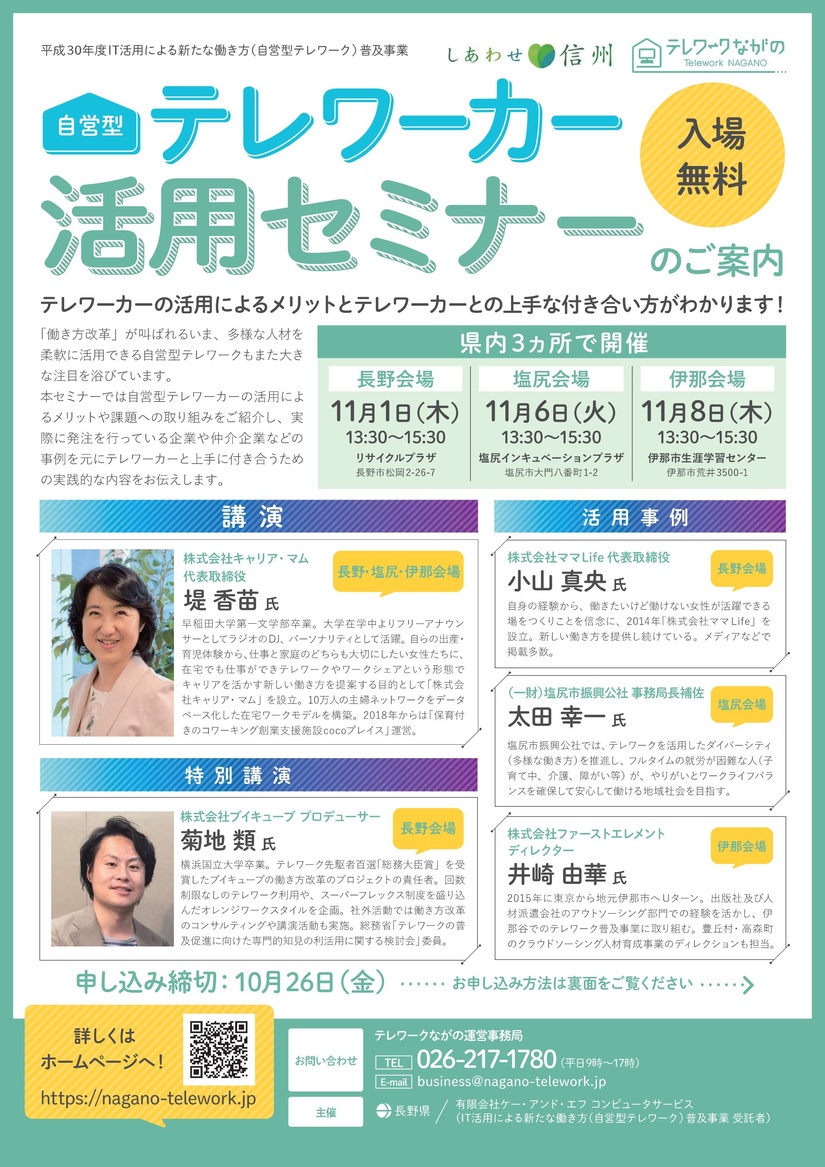 テレワークながのより企業向け「自営型テレワーカー活用セミナー」のご案内です。