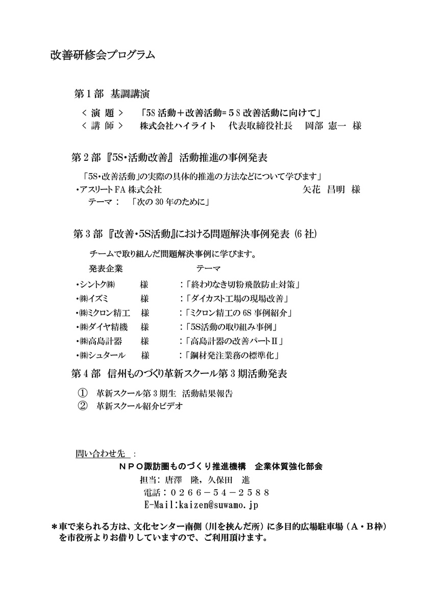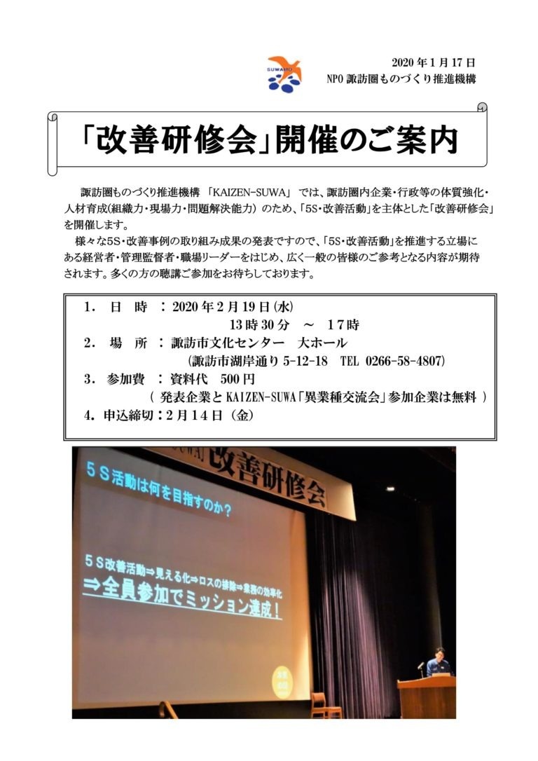 諏訪圏ものづくり推進機構より「改善研修会」開催のご案内です。